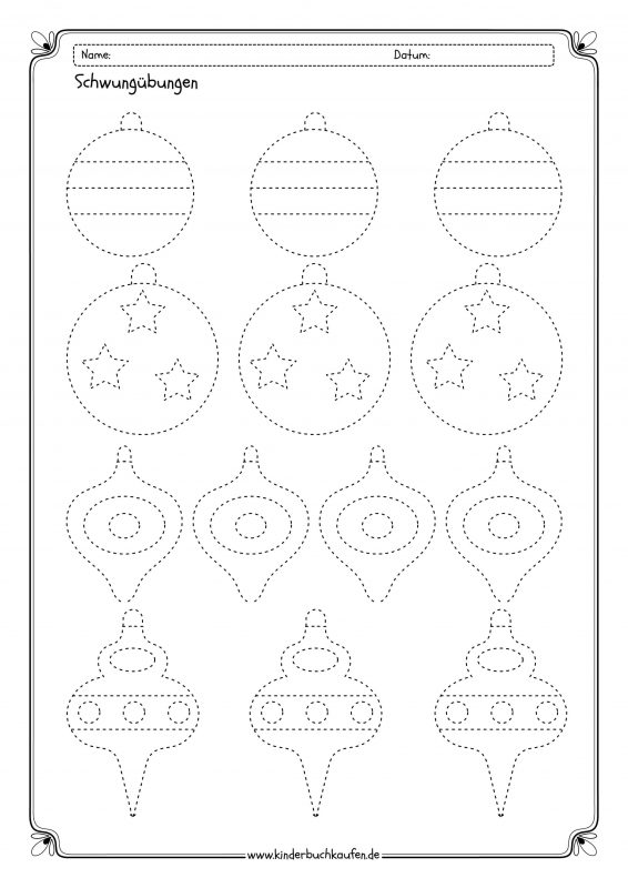 Um die Motivation beim Üben mit Schwungübungen auf lange Sicht aufrecht zu erhalten, ist Abwechslung das A und O. Dafür können Sie sich bei der Auswahl der Schwungübungen Arbeitsblätter zum Beispiel an der aktuellen Saison und den Anlässen, die unmittelbar bevorstehen, orientieren. Unter unseren kostenlosen Arbeitsblättern mit „Schwungübungen Anlass“ finden Sie mitunter Übungen, die mit weihnachtlichen Motiven aufwarten, Osterstimmung aufkommen lassen oder an Geburtstagsfeierlichkeiten angelehnt sind.