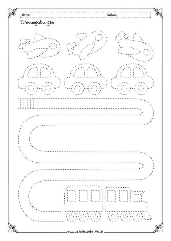 Wenn eine Urlaubsreise ansteht oder Ihr Kind zu den kleinen Entdeckern gehört, die sich für alles, was in die Kategorie Fortbewegungsmittel fällt, interessieren, können Sie seine Begeisterung für Schwungübungen mit unseren Arbeitsblättern zum Thema Fahrt wecken. Vom Heißluftballon über Flugzeuge und Autos bis hin zur Eisenbahn ist bei den kostenlosen Arbeitsblättern für jeden Fahrzeug-Fan etwas dabei.