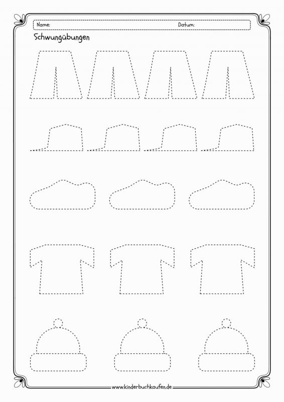 Als Gegenstände, die Ihrem Kind tagtäglich begegnen, sind Kleidungsstücke etwas, das Ihr Kind mehr als gut kennt. Auch wenn die Textilien an und für sich womöglich nicht gerade als sonderlich spannend empfunden werden, sorgen sie, verpackt in lehrreiche Schwungübungen, für den optimalen Mix aus Ausmalspaß und Lernen.