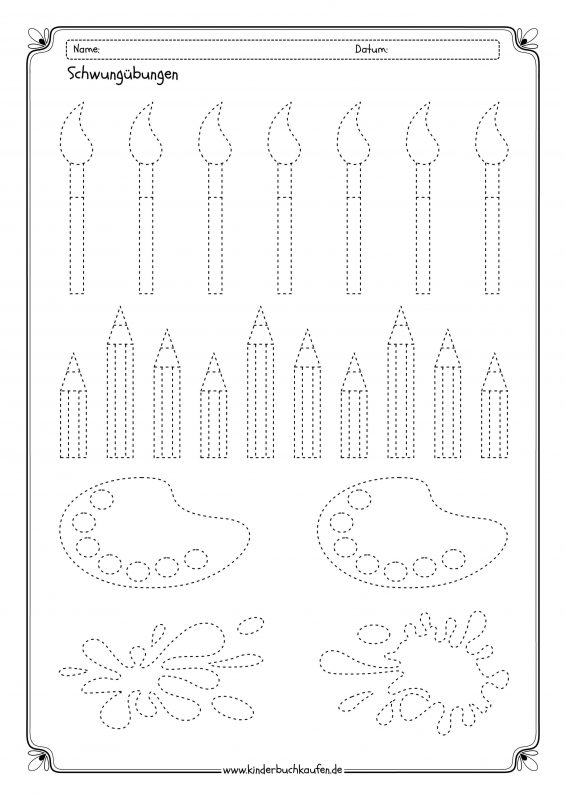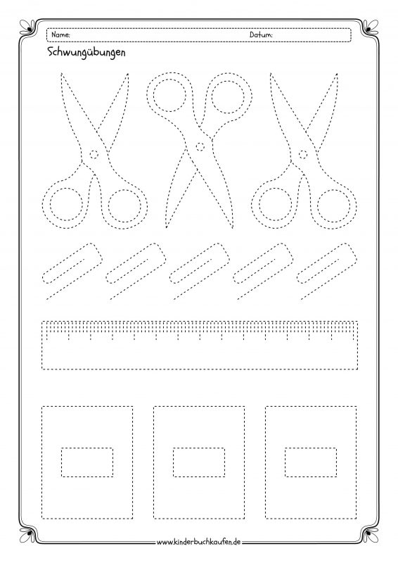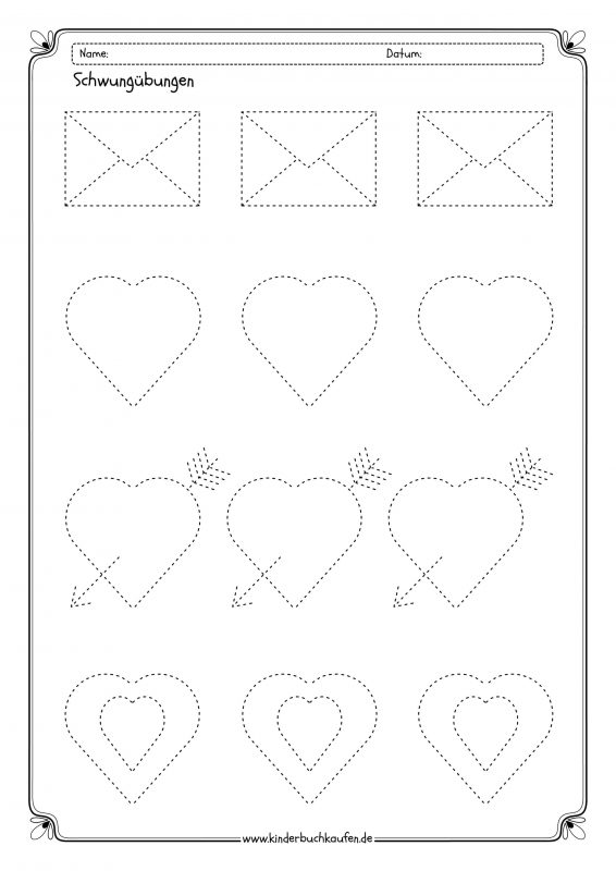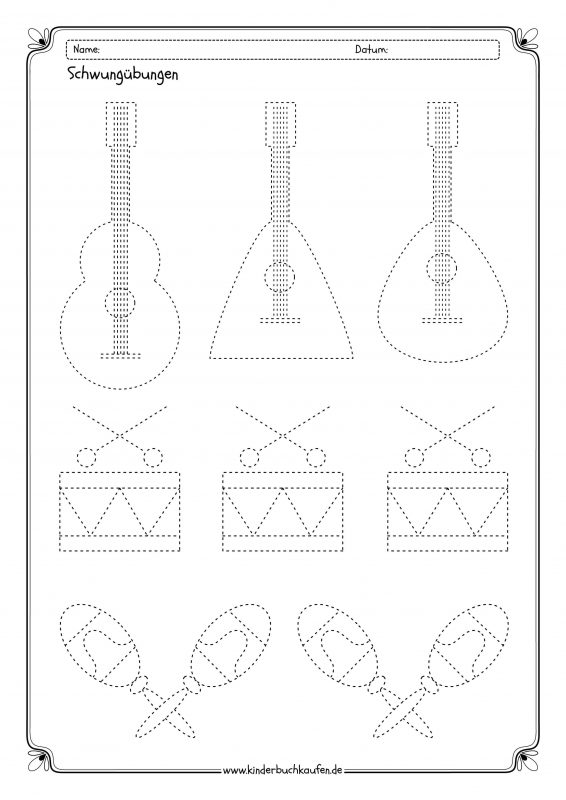 Mit den Arbeitsblättern aus der Kategorie „Schwungübungen Objekte“ wird es so richtig abwechslungsreich. Sie haben beispielsweise die Wahl aus Schwungübungen in Form von Herzen, gängigen Büromaterialien, Musikinstrumenten, windschnittigen Papierfliegern und vollgestapelten Bücherregalen. Am besten lassen Sie Ihr Kind selbst entscheiden, welches der liebevoll gestalteten Schwungübungs-Arbeitsblätter es gerne als erstes bearbeiten möchte.