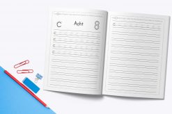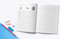 - Freies Schreiben: Schließlich ist Ihr Kind bereit, den Buchstaben frei zu schreiben. Dabei wird es von Hilfslinien dazu angeleitet, die Buchstaben direkt in der richtigen Höhe zu platzieren.