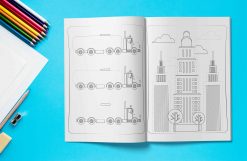 Auch der dritte Abschnitt hat ein besonderes Thema: Es geht um die Stadt. An dieser Stelle wird die zuvor geförderte kontrollierte Stiftführung nochmals explizit trainiert, denn es gilt, komplexere Linien und Formen zu zeichnen, um städtische Bilder zu vervollständigen.